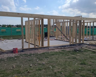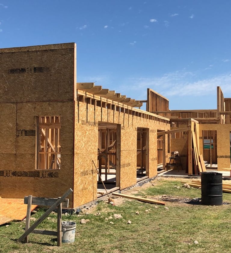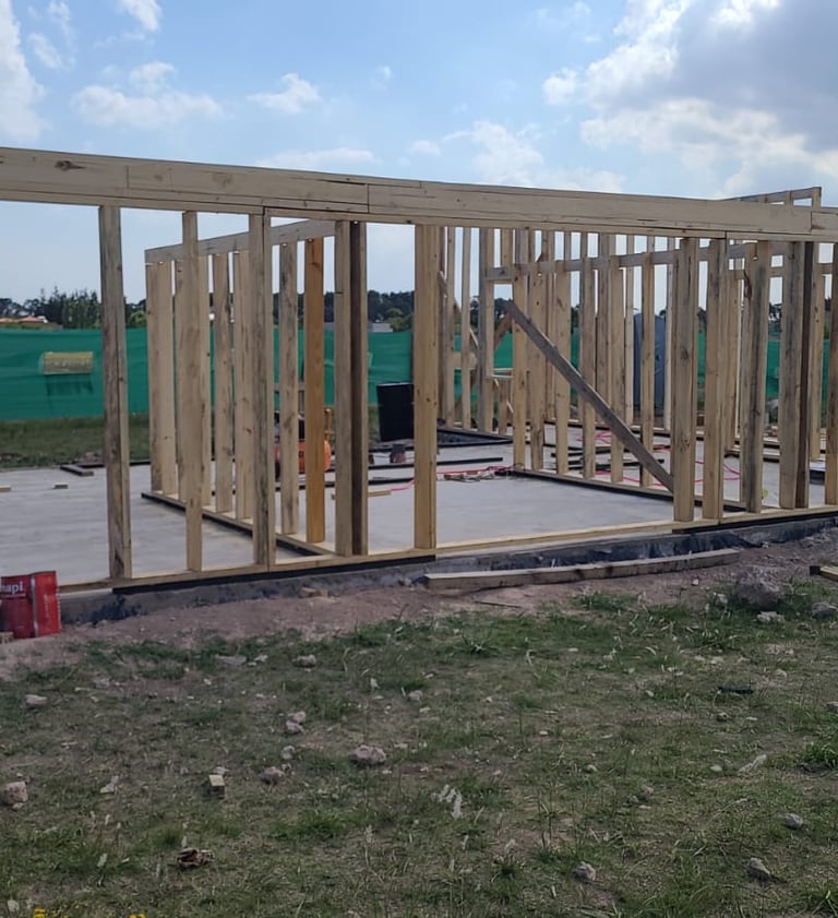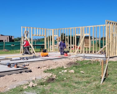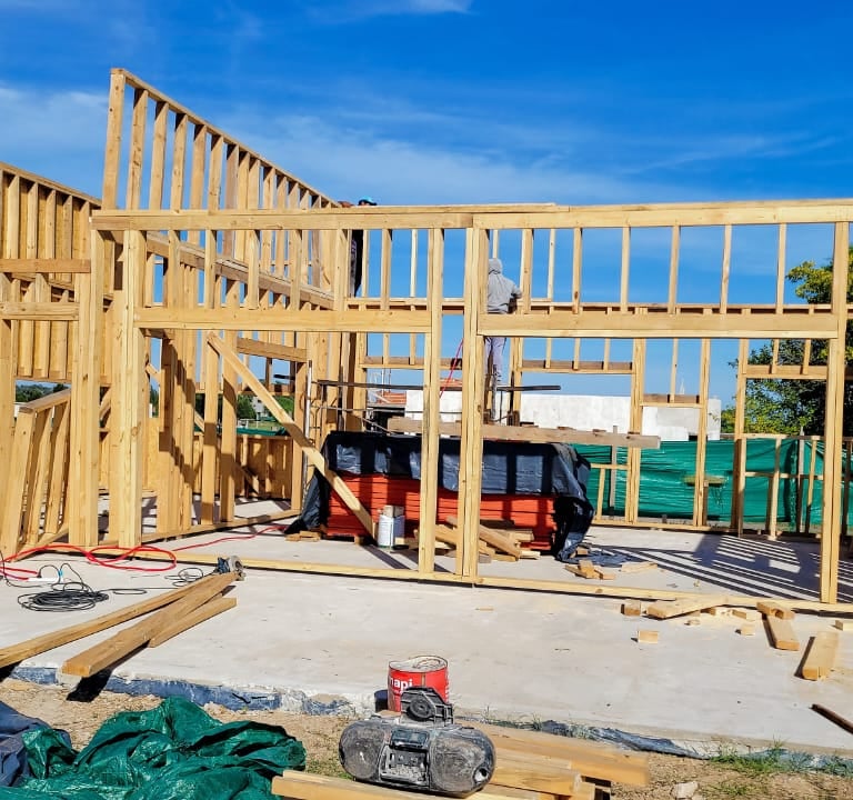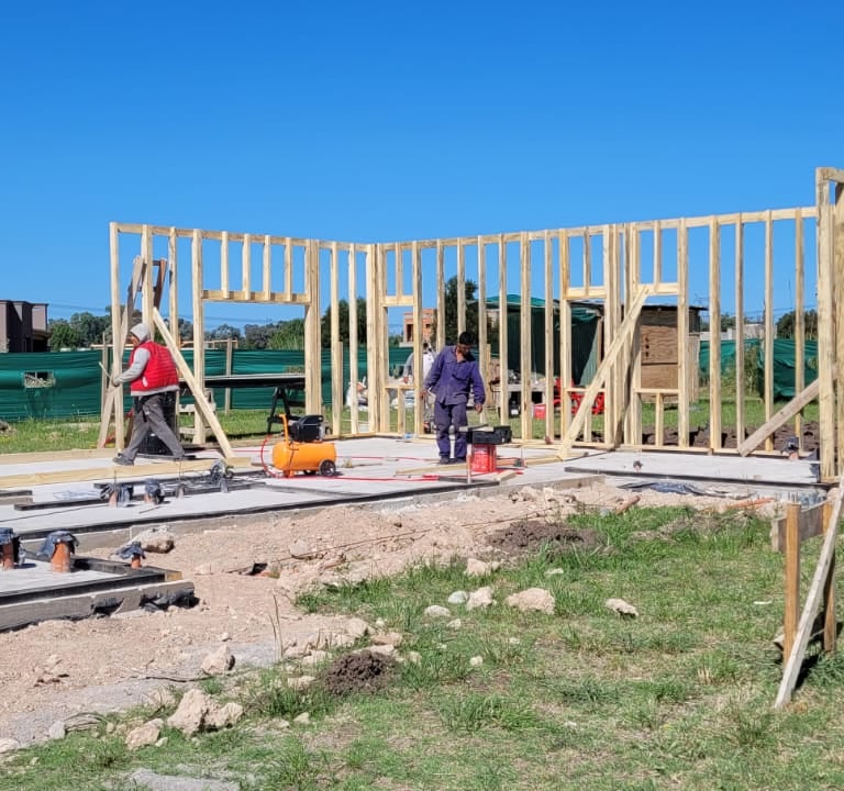 Utilizando clavadora neumática con clavos espiralados de acero en tirantes de 2"x4" en pino elliotis cepillado y secado en horno.